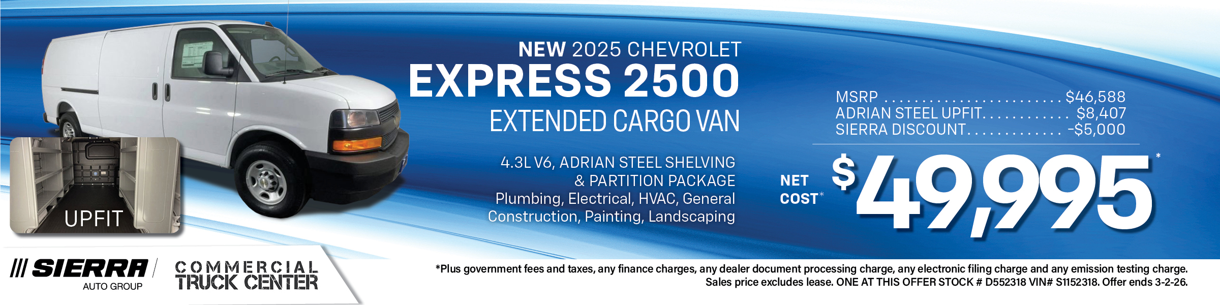 We specialize in equipping businesses with the right tools. Our inventory features a variety of Chevrolet and Ram commercial vehicles, including: